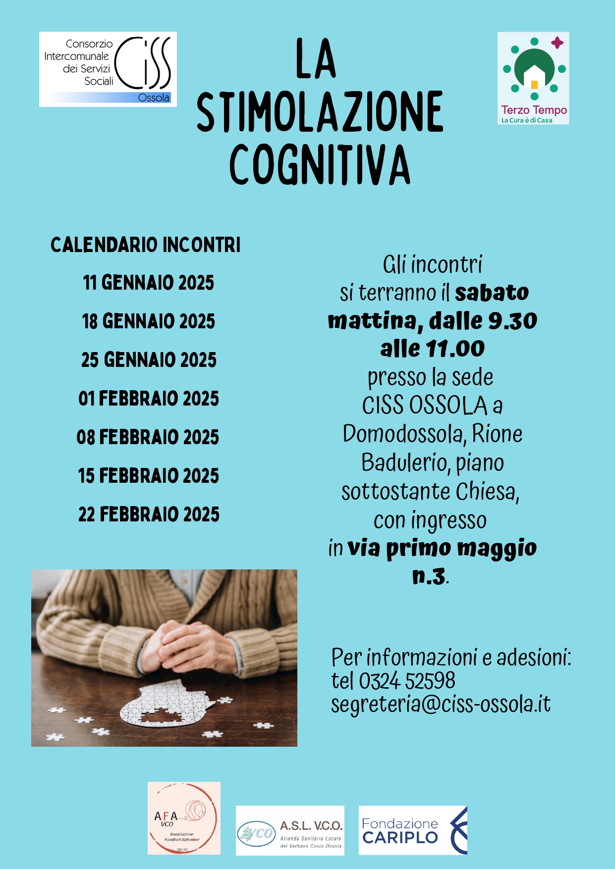 Gli incontri si terranno il sabato mattina, dalle 9.30 alle 11.00, presso la sede CISS Ossola, Rione Badulerio, piano sottostante la chiesa, con ingresso in Via Primo Maggio 3.