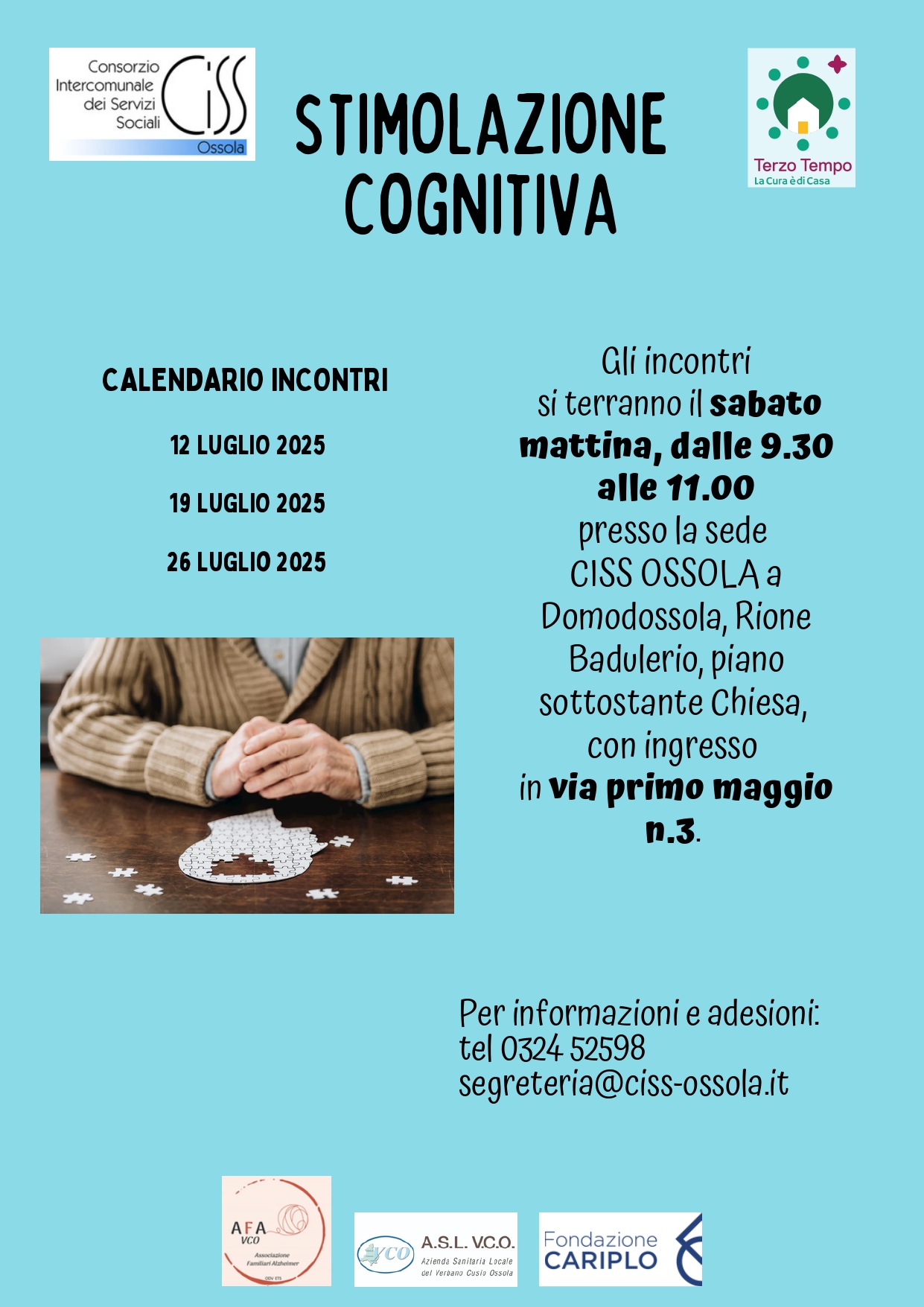 Gli incontri si terranno il sabato mattina, dalle 9.30 alle 11.00, presso la sede CISS Ossola a Domodossola, Rione Badulerio, piano sottostante la chiesa, in Via Primo Maggio 3.