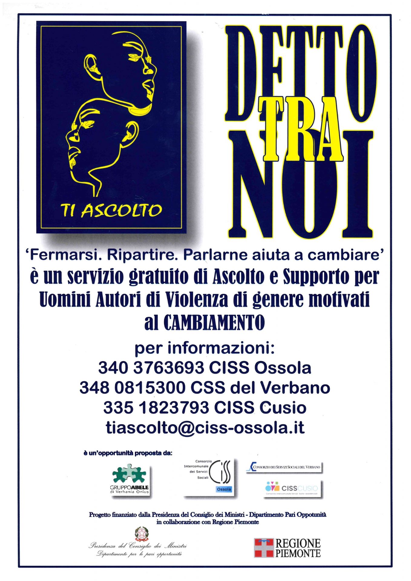Servizio gratuito di ascolto e supporto per uomini autori di violenza di genere motivati al cambiamento