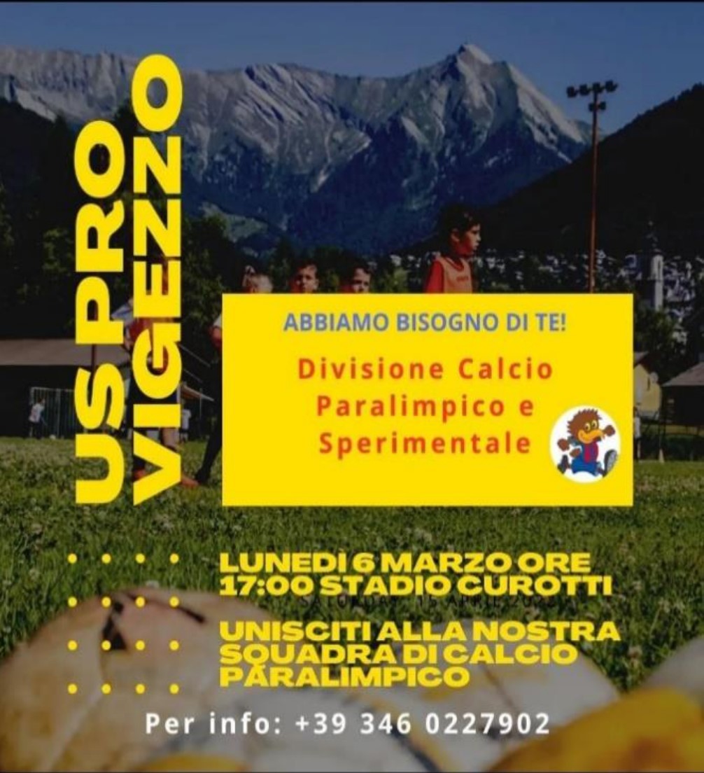 Il 6 marzo 2023 presso lo Stadio Curotti di Domodossola il Presidente dell’US Pro Vigezzo, Sig. Guido Bonzani, ha presentato una nuova iniziativa volta alla creazione di una squadra di Calcio Paralimpico e Sperimentale nel nostro territorio.