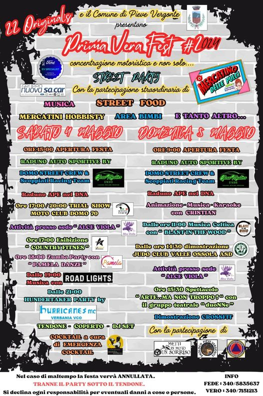 Sabato 4 e Domenica 5 Maggio 2024 a Pieve Vergonte si è tenuta la manifestazione “Prima Vera Fest”, organizzata dal gruppo “Baldanza Bikers 22 Original”, un gruppo di motociclisti sostenitori e amici del CDSTE, che organizzano alcune iniziative festose durante l’anno, quali “Le Befane in motocicletta” che consegnano doni al Centro nel periodo natalizio.