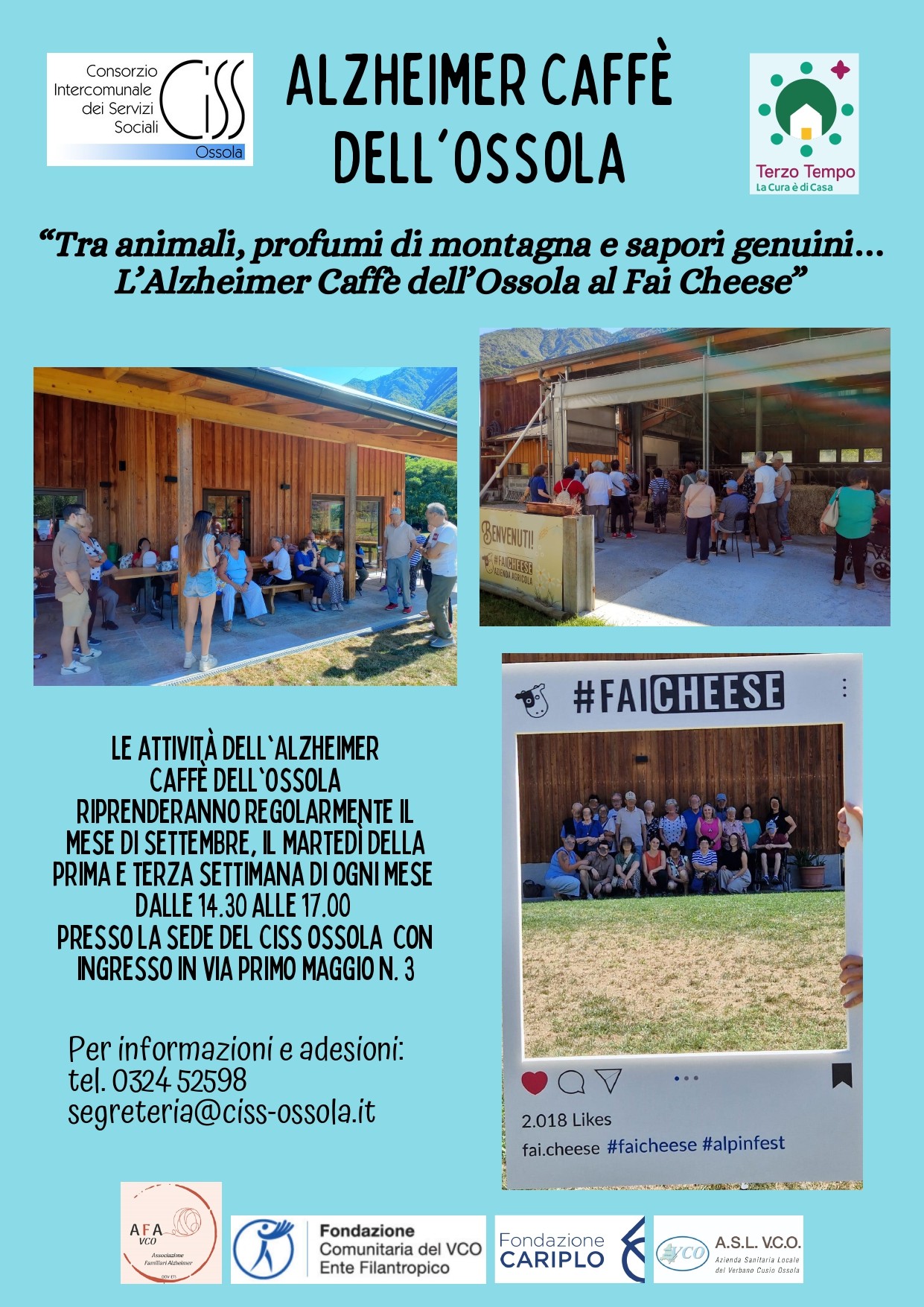 In data 22/07/2025, l’Alzheimer Caffè dell’Ossola, gestito dal Sevizio Sociale Professionale del CISS Ossola, ha realizzato un’uscita fuori porta all’Azienda Agricola “Fai Cheese” di Trontano (Fraz. Quarata).
