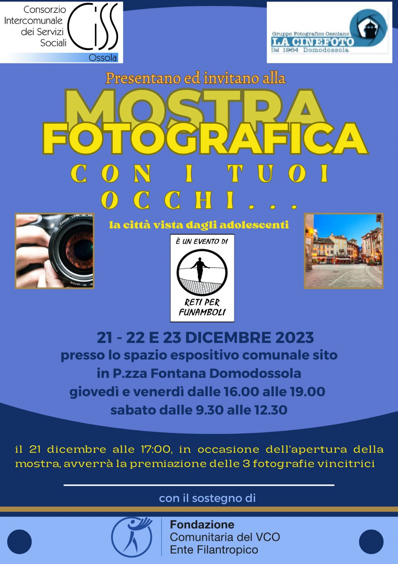 Mostra fotografica "Con i tuoi occhi... La città vista dagli adolescenti" - 21/22/23 dicembre 2023 presso lo spazio espositivo comunale in Piazza Fontana a Domodossola.