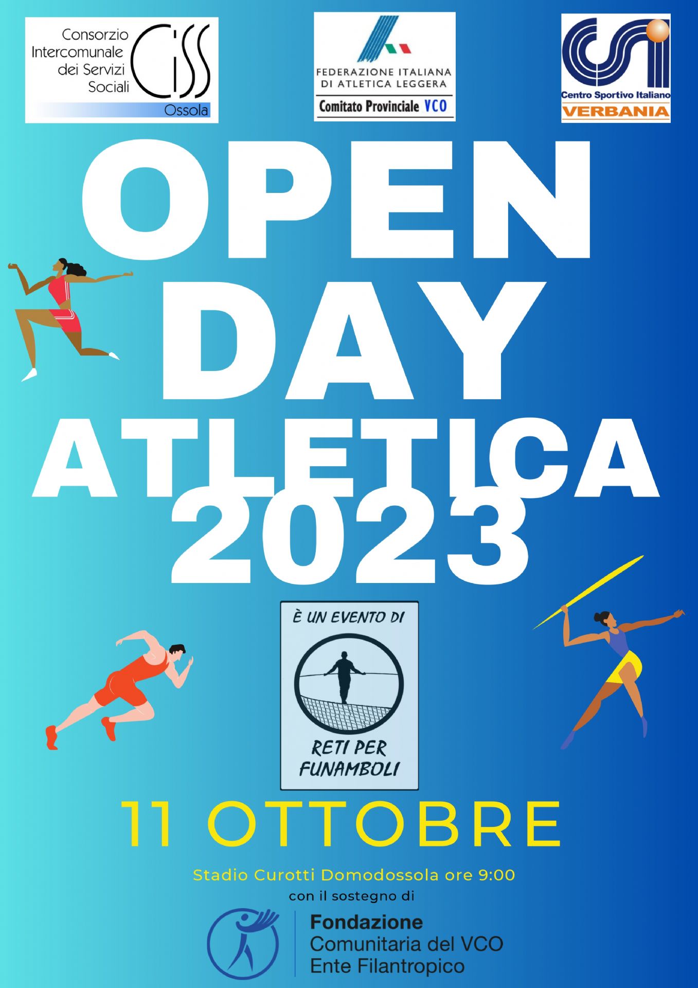 Open day Atletica - 11 ottobre 2023 ore 9 (Stadio Curotti - Domodossola)