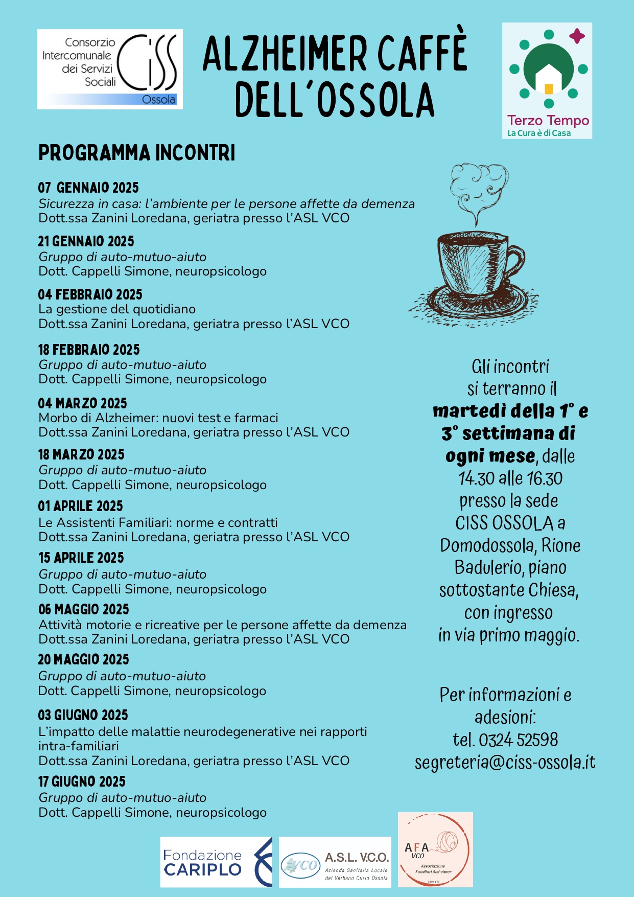 Alzheimer Caffè dell'Ossola - Programma incontri gennaio/giugno 2025