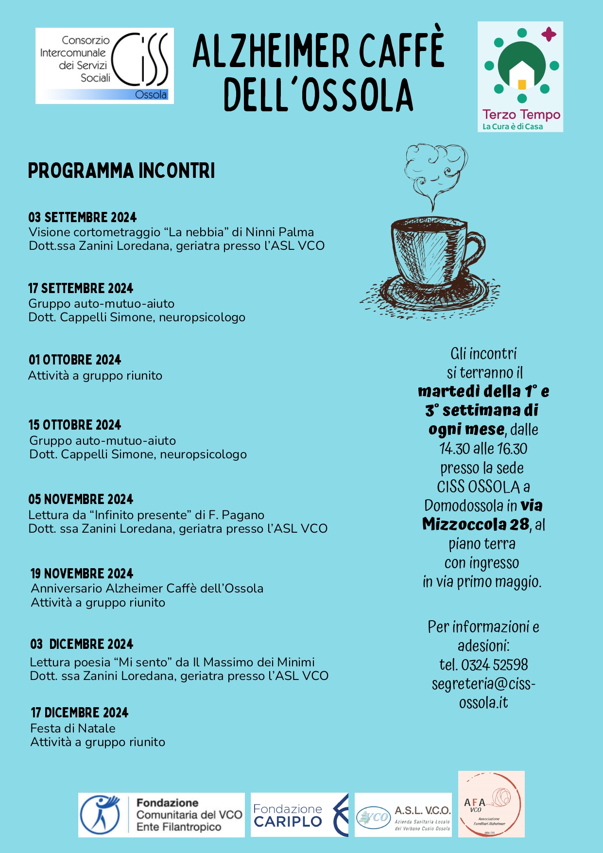 Alzheimer Caffè dell'Ossola - Programma incontri settembre-dicembre 2024