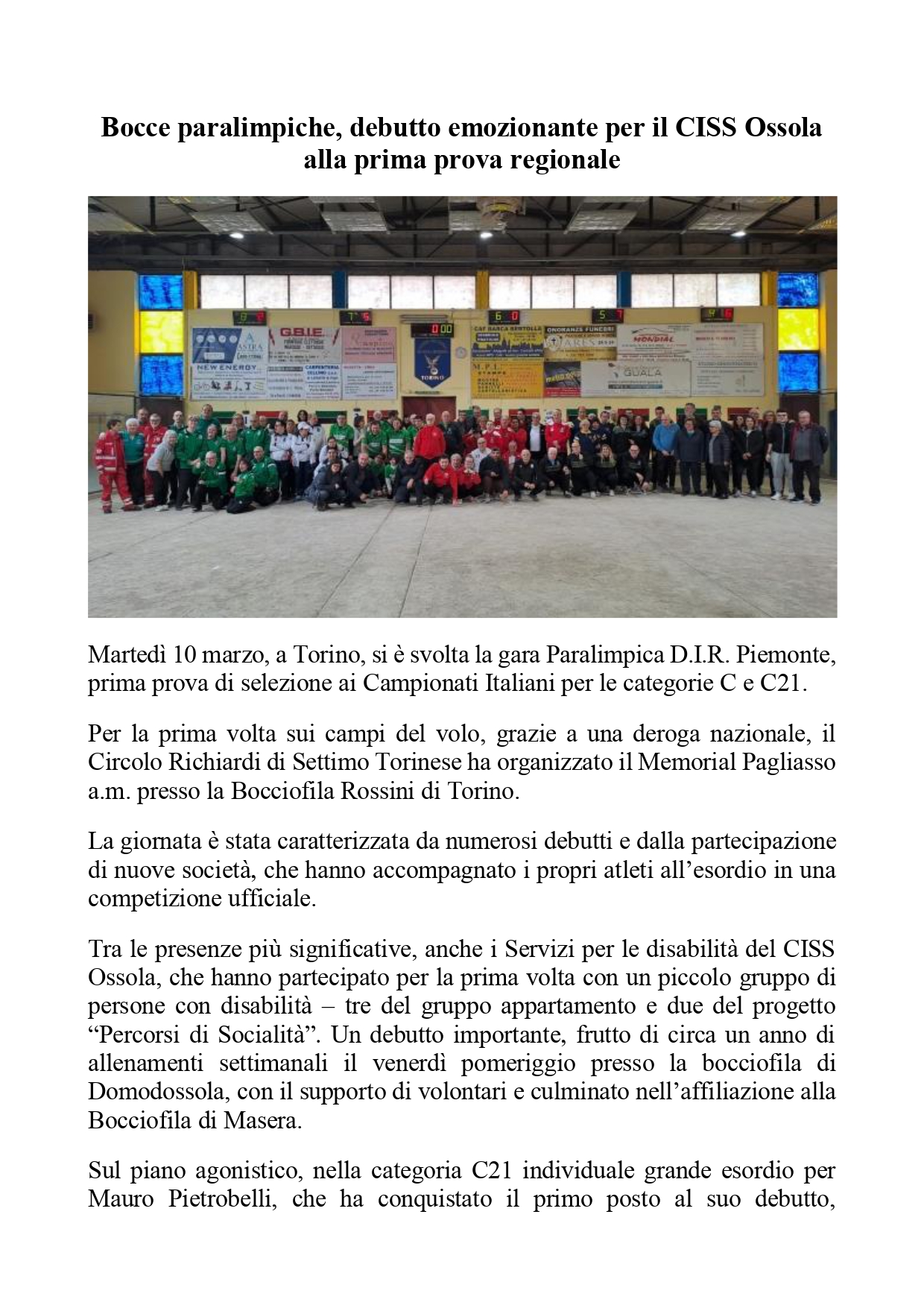 Bocce paralimpiche, debutto emozionante per il CISS Ossola alla prima prova regionale