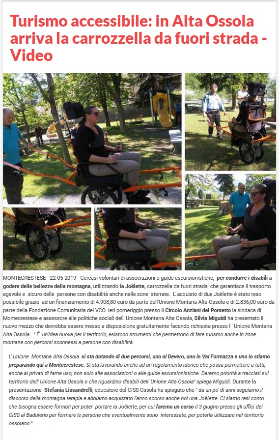 In tema di mobilità in ambienti naturali con persone con disabilità talvolta è necessario dotarsi della Joëlette, ausilio che permette anche a persone con disabilità motorie la partecipazione alle attività.
