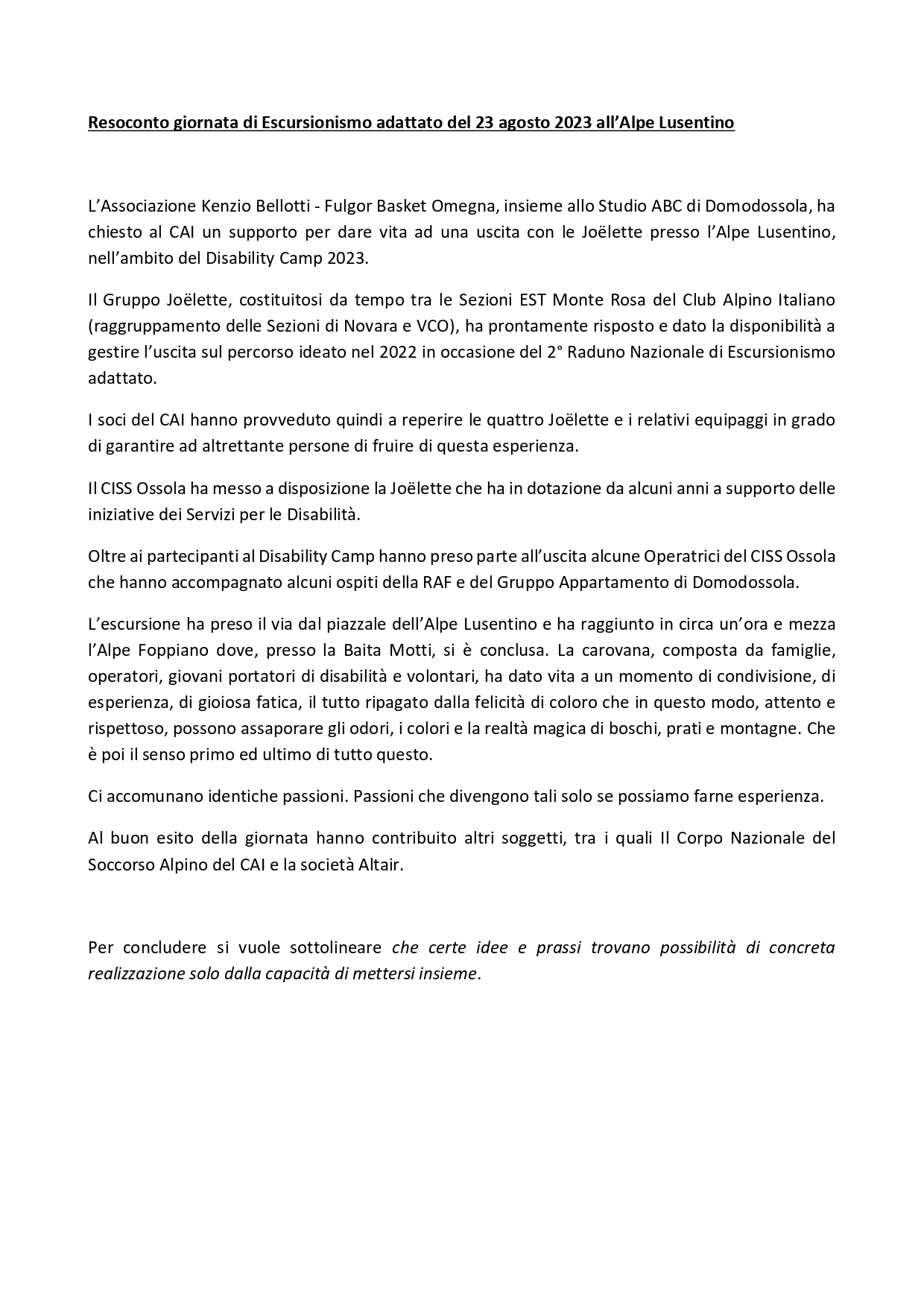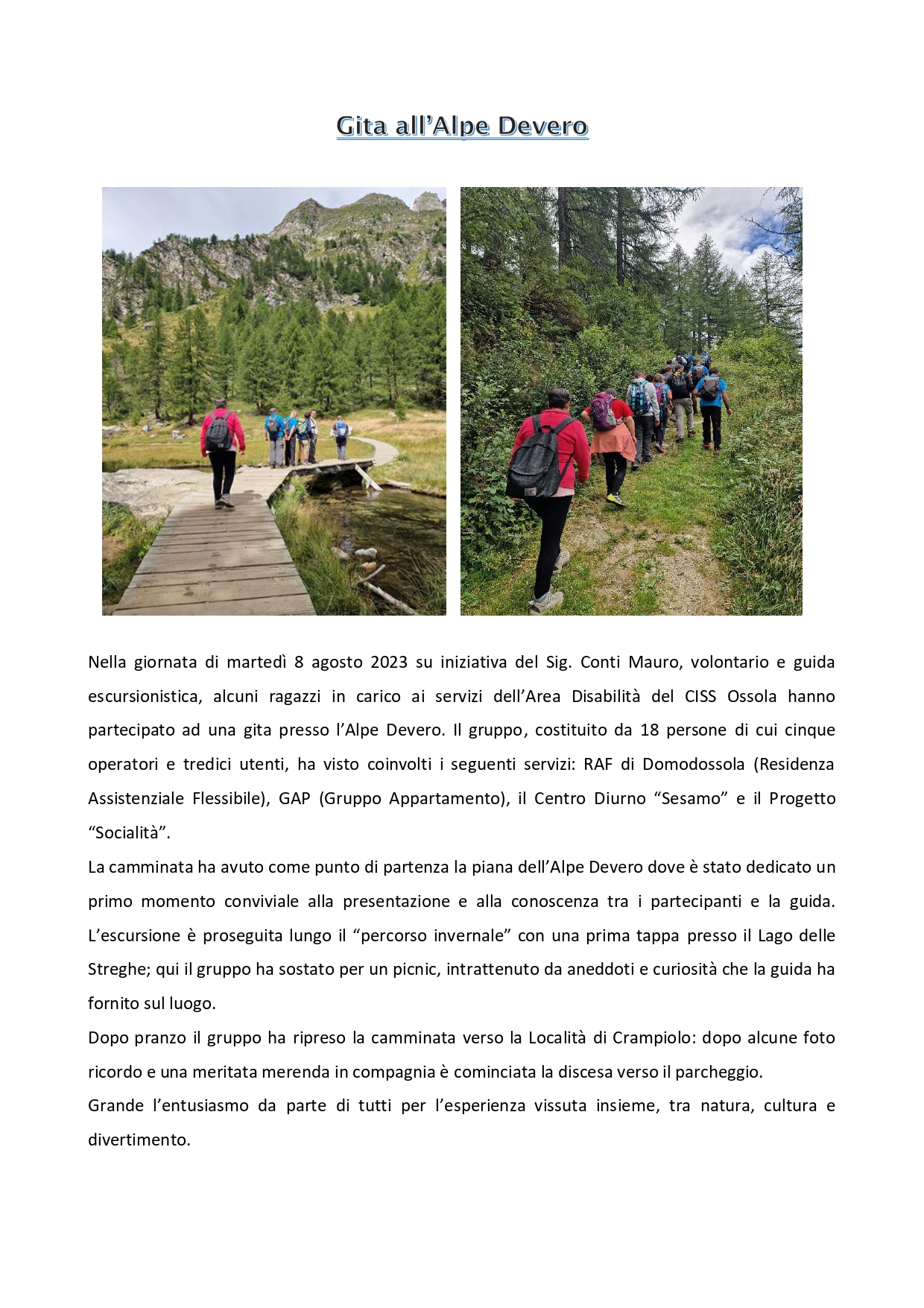 Alcuni operatori sociali del CISS Ossola, appassionati della montagna, da qualche anno realizzano esperienze e attività in ambienti naturali con persone assistite da Servizi dell’Ente.